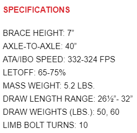 「AXLE-TO-AXLE: 40" 」と表記されているのでこの弓はアクセル間が40インチだと分かります。
